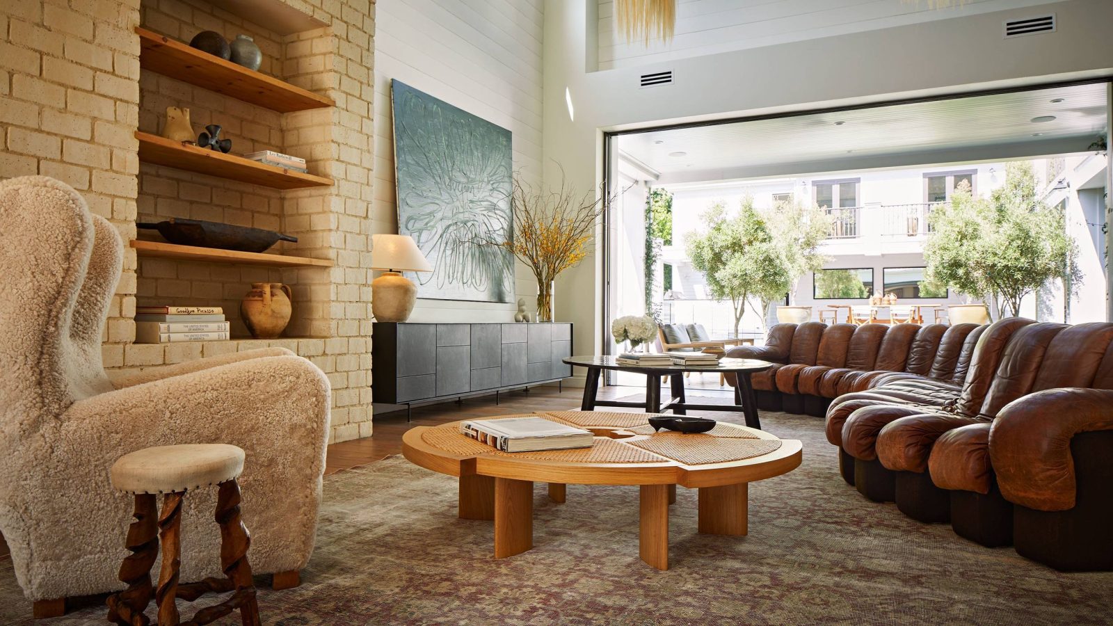 Les tons terracotta, beige sable, et ocre continuent de dominer les intérieurs, offrant une atmosphère chaleureuse et naturelle.